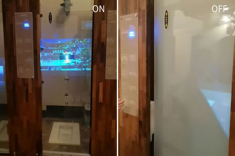 無人時(shí)玻璃呈透明,有人時(shí)玻璃變霧化